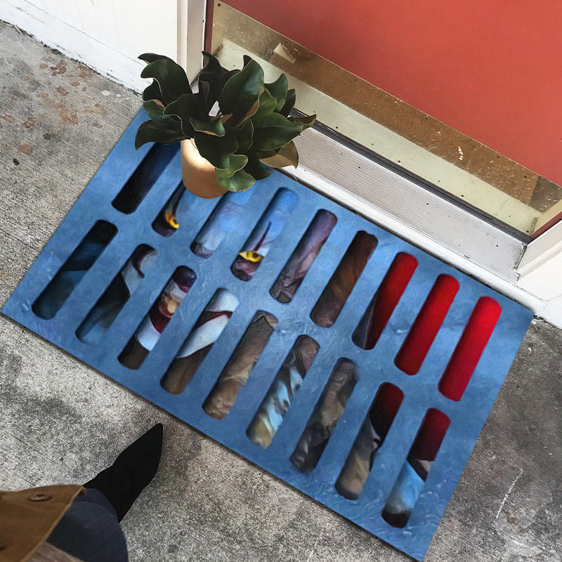抖音同款养狗神器3d搞怪视觉陷阱下水道井盖小丑地毯万圣节门骷髅