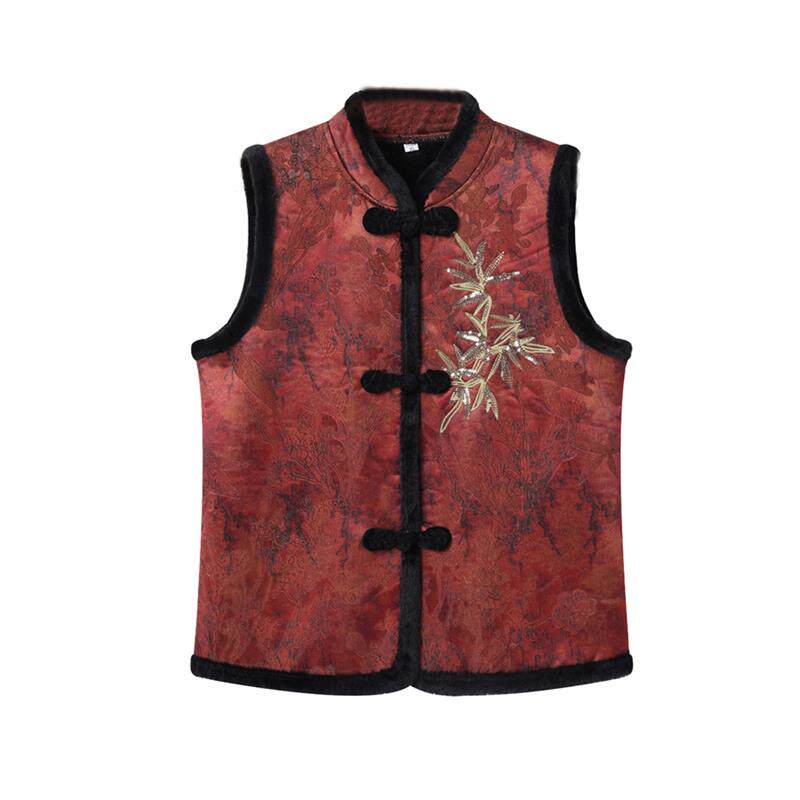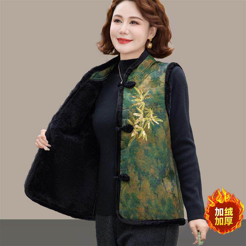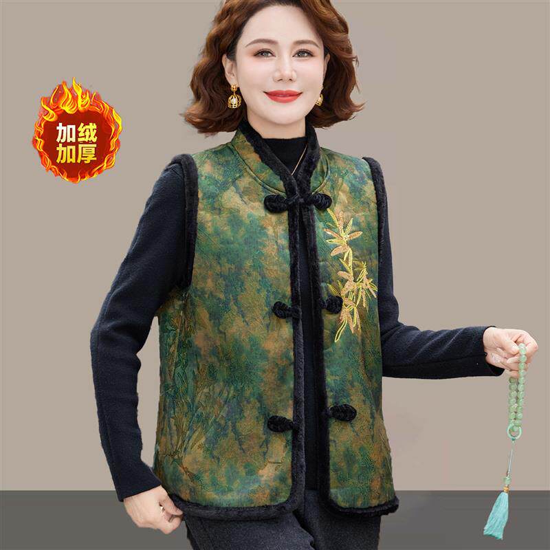 妈妈秋冬装中式加绒加厚马夹洋气国风中老年人女保暖背心坎肩马甲