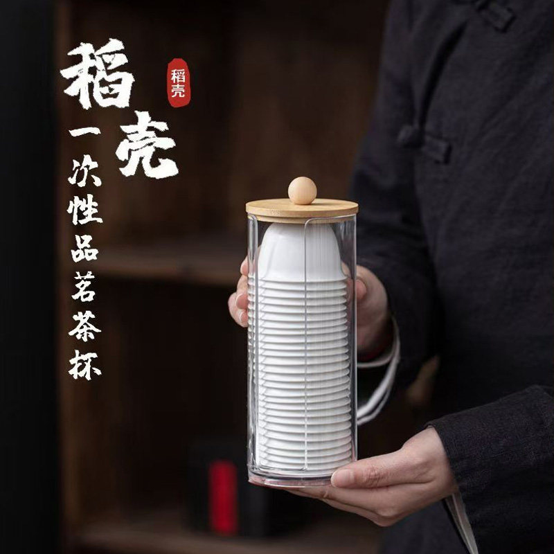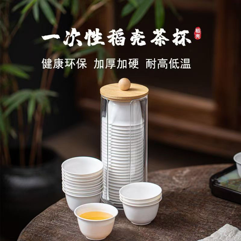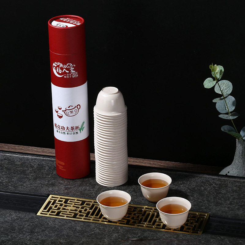 一次性茶杯稻壳功夫茶杯加厚品茗杯纸筒一口杯食品级家用可降解