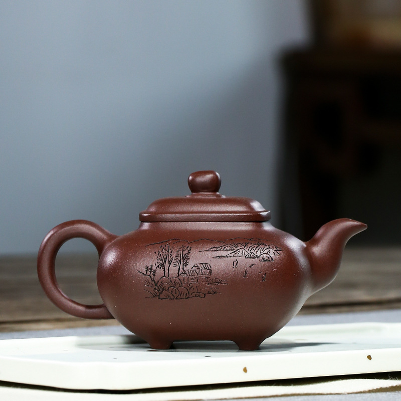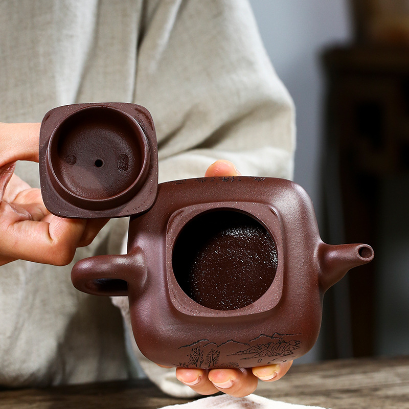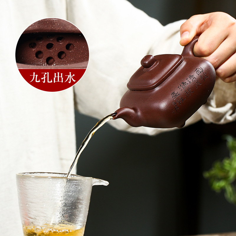精品全手工四方传炉茶壶功夫茶具宜兴原矿紫砂壶货紫泥