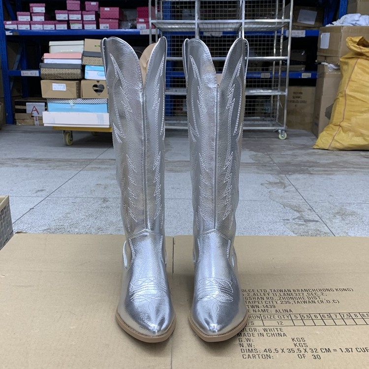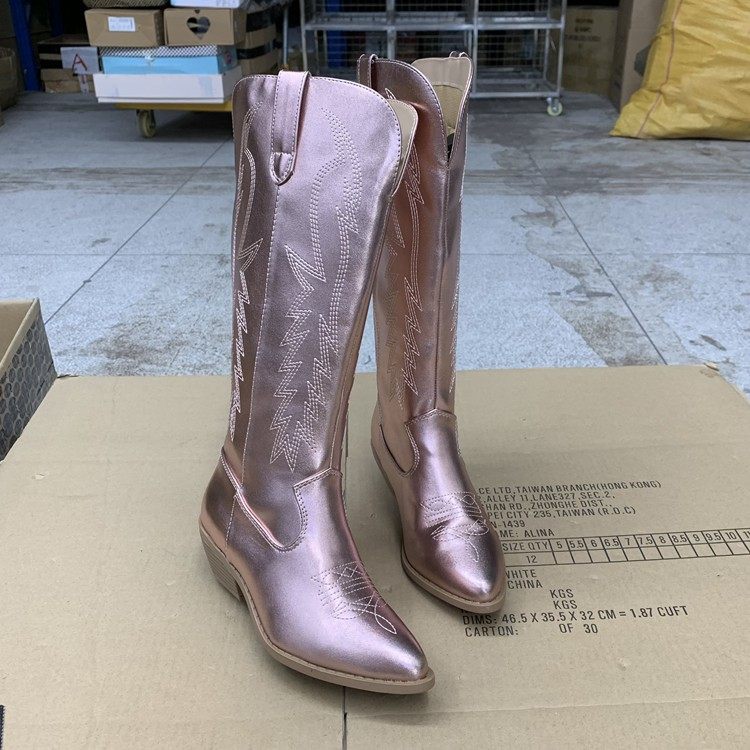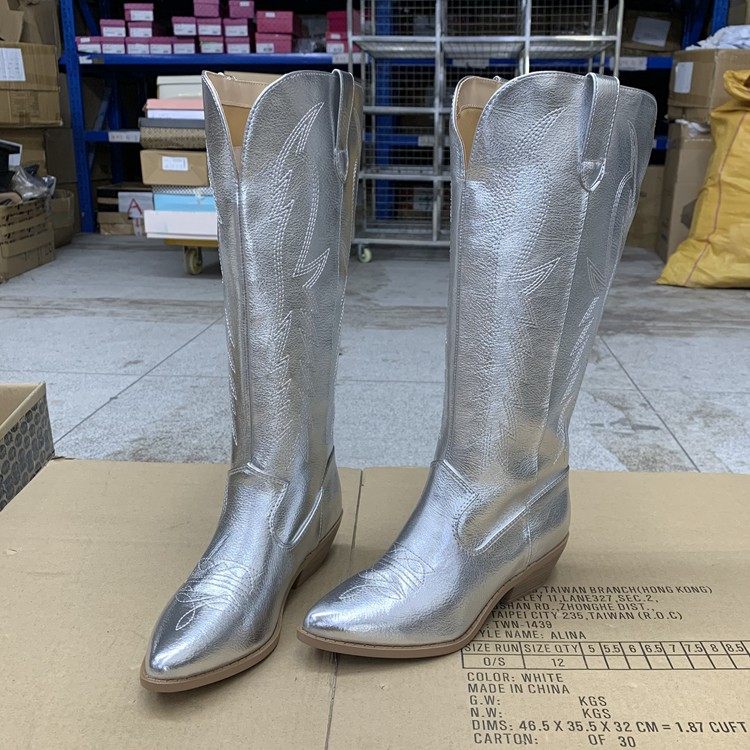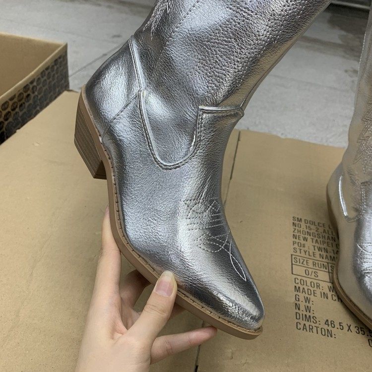 外贸女鞋原单秋季新款矮粗跟时尚简约大气长靴尖头套筒单靴