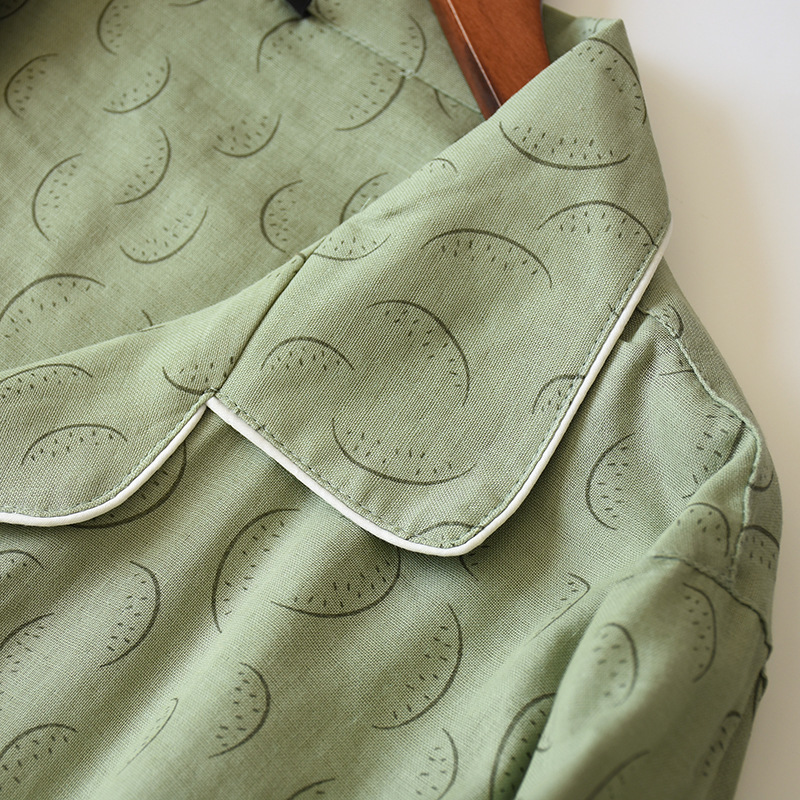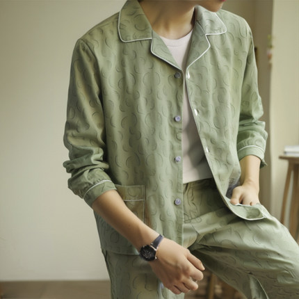 男士纯棉双层纱布薄款睡衣 翻领长袖长裤夏季家居服套装