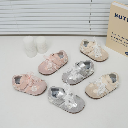 小步点女宝宝公主单鞋秋季新款一岁半女宝学步鞋女童鞋蕾丝小皮鞋