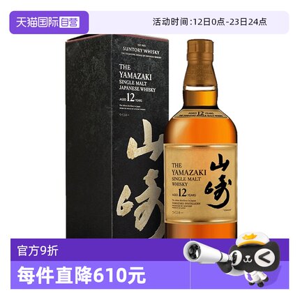 【自营】日本山崎12年单一麦芽威士忌700ml三得利Yamazaki洋酒