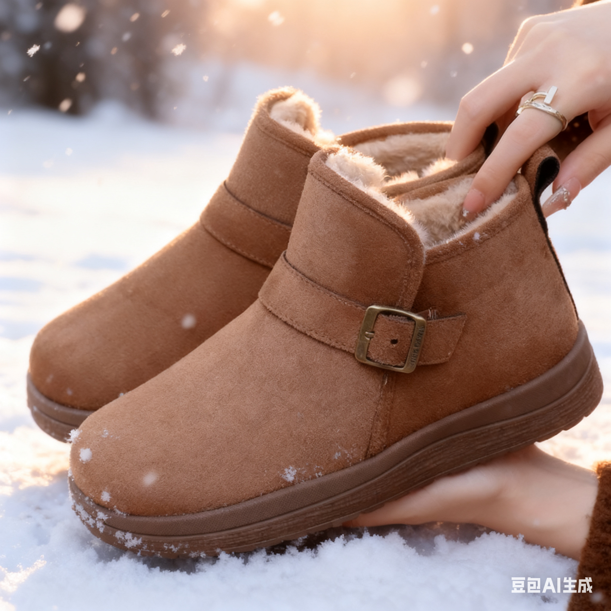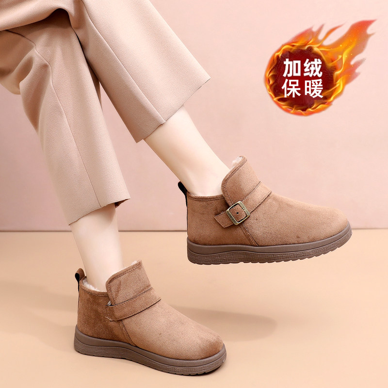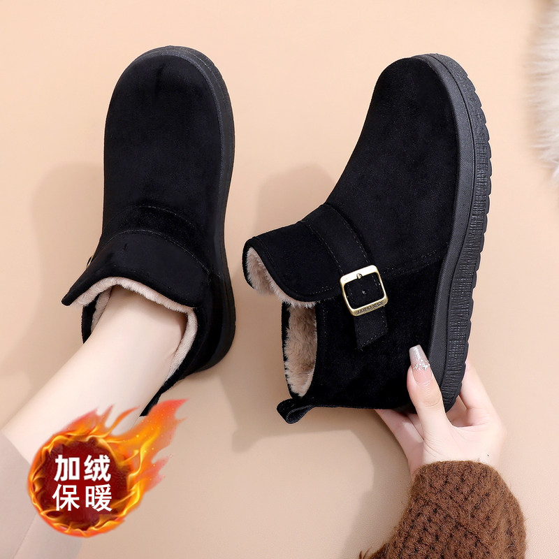 加绒保暖棉鞋女老北京布鞋女棉鞋冬季防滑厚底短靴加厚黑色勃肯鞋