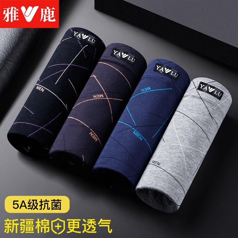 雅鹿男士内裤纯棉抗菌四角平角透气男生青年时尚休闲运动宽松短裤