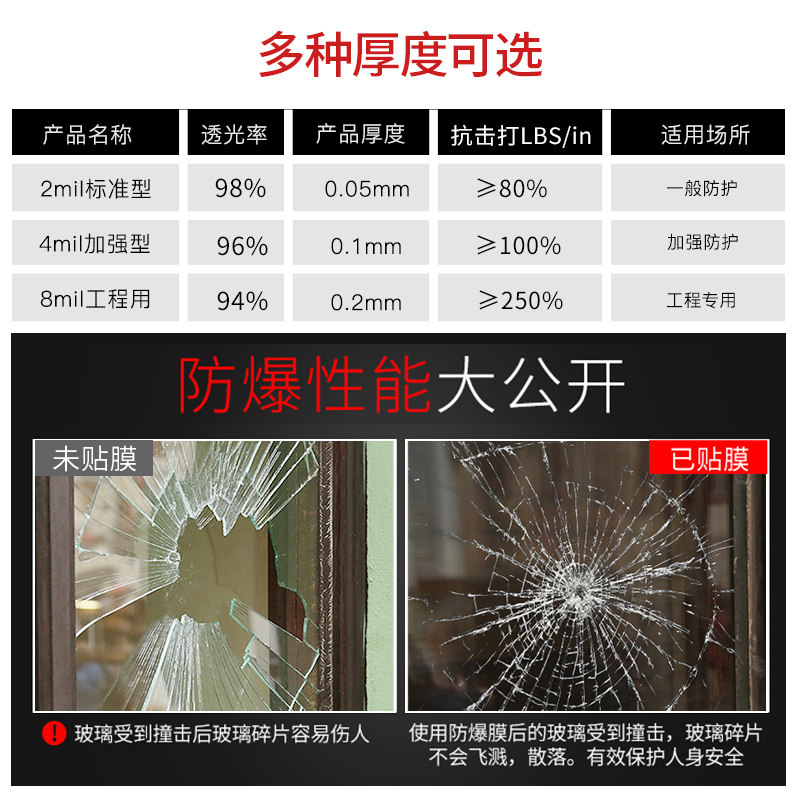 钢化玻璃防爆膜浴室淋浴房移门防碎裂贴膜透明安全膜窗户家用自粘