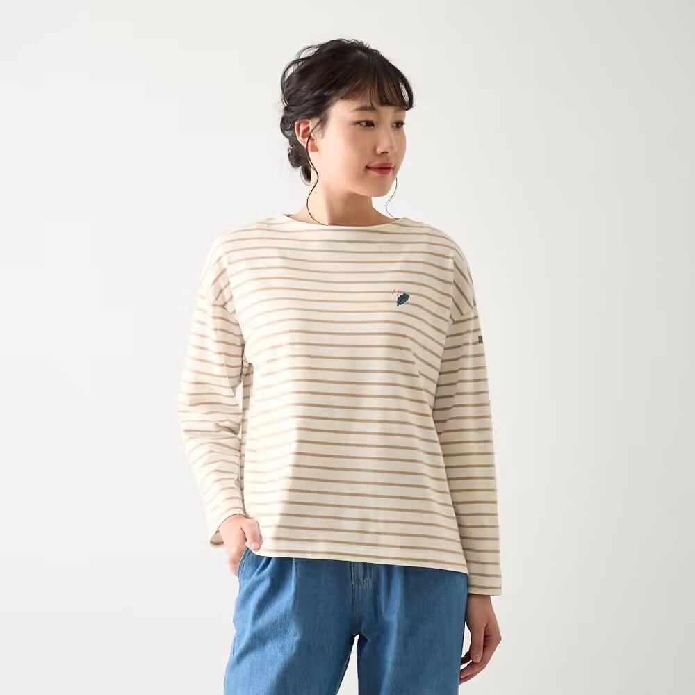 纯棉圆领长袖女士厚T恤条纹上衣
