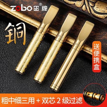zobo正牌纯铜烟嘴过滤器循环型男女士香烟具粗中细三用可清洗烟嘴