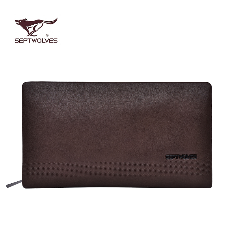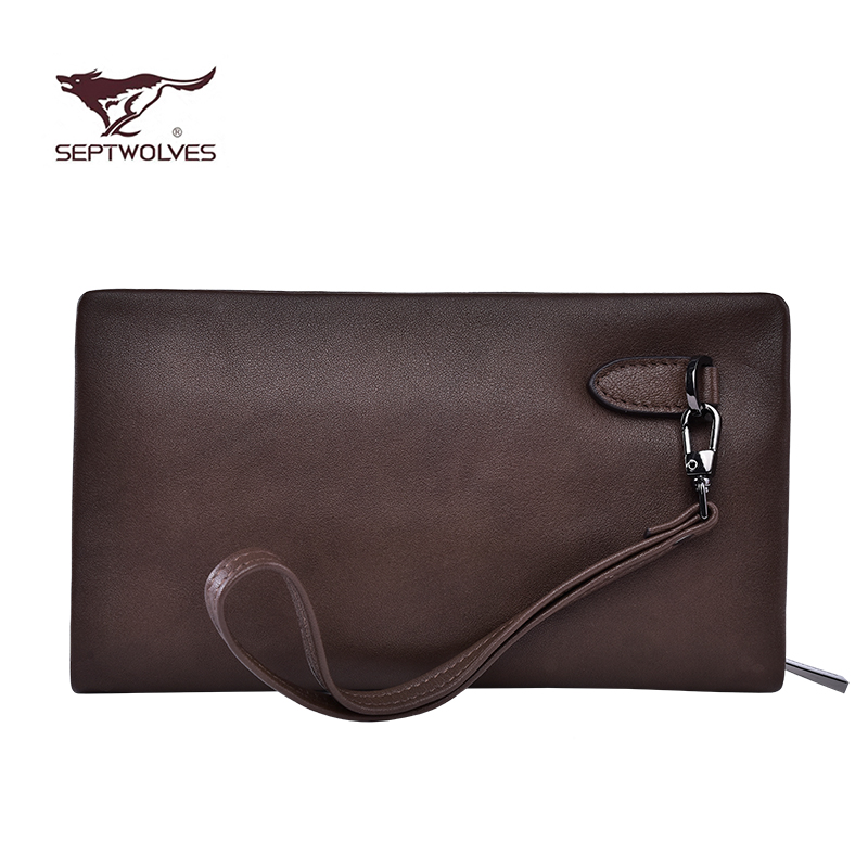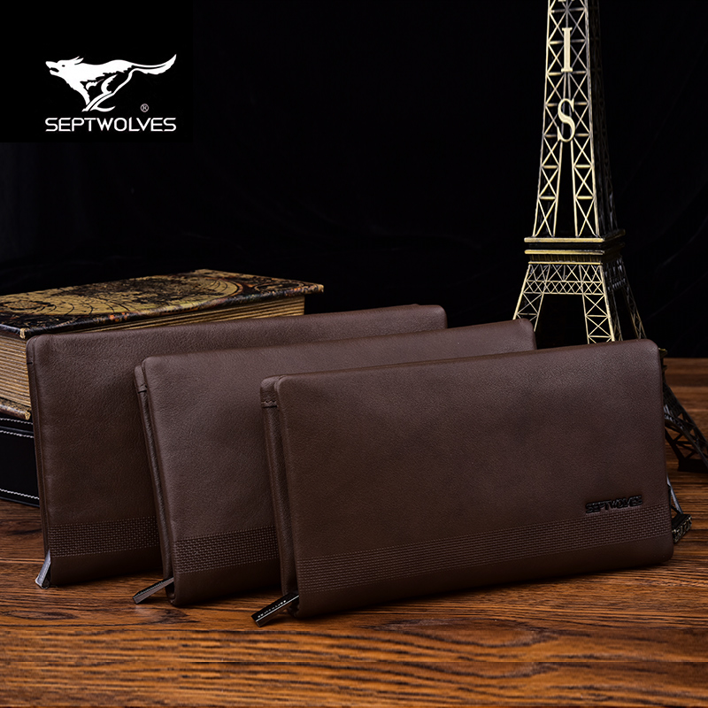 七匹狼男士商务手拿包正品真皮牛皮手抓包大容量多功能钱包手机包