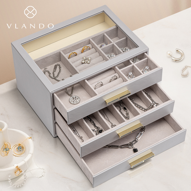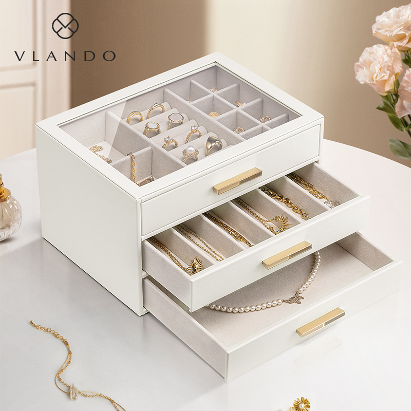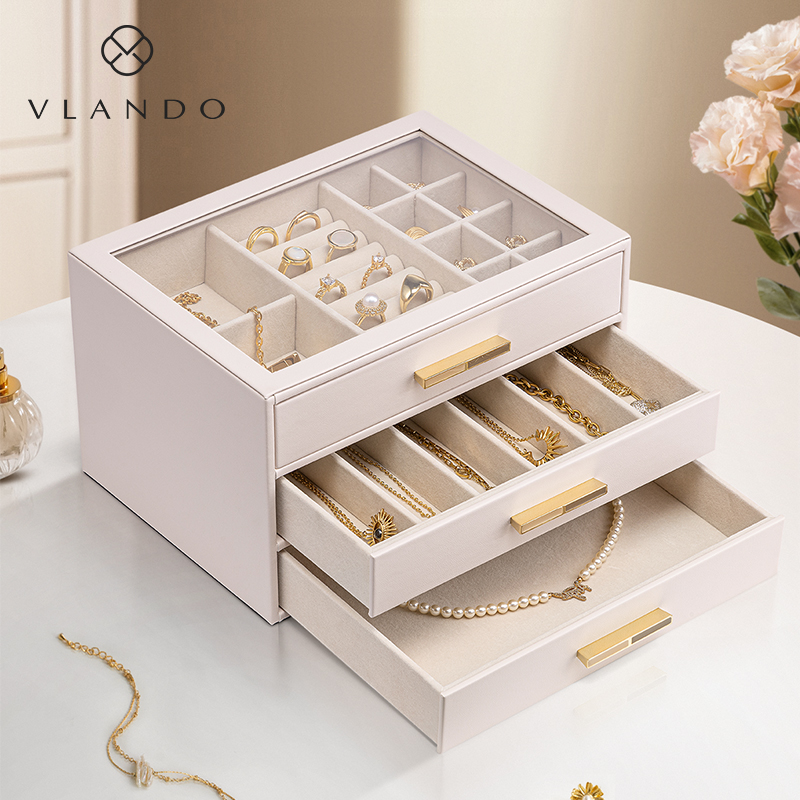 唯兰朵新款首饰盒防氧化大容量戒指手镯收纳盒高档精致生日礼物