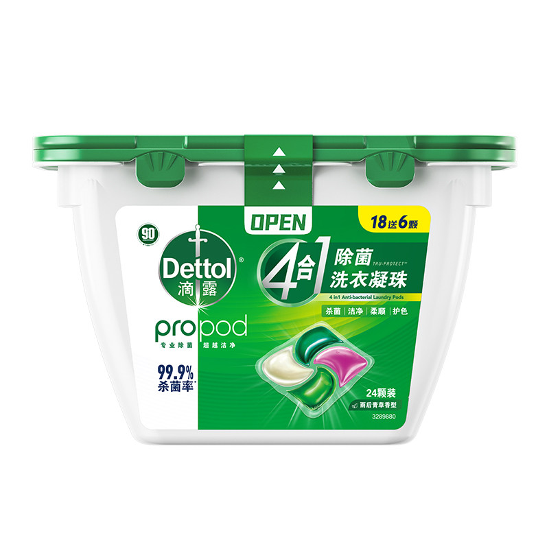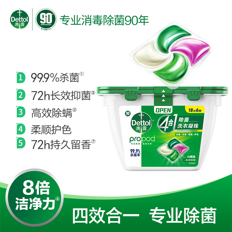 滴露4合1除菌洗衣凝珠24颗雨后青草去污渍洗衣液柔顺留香专业杀菌