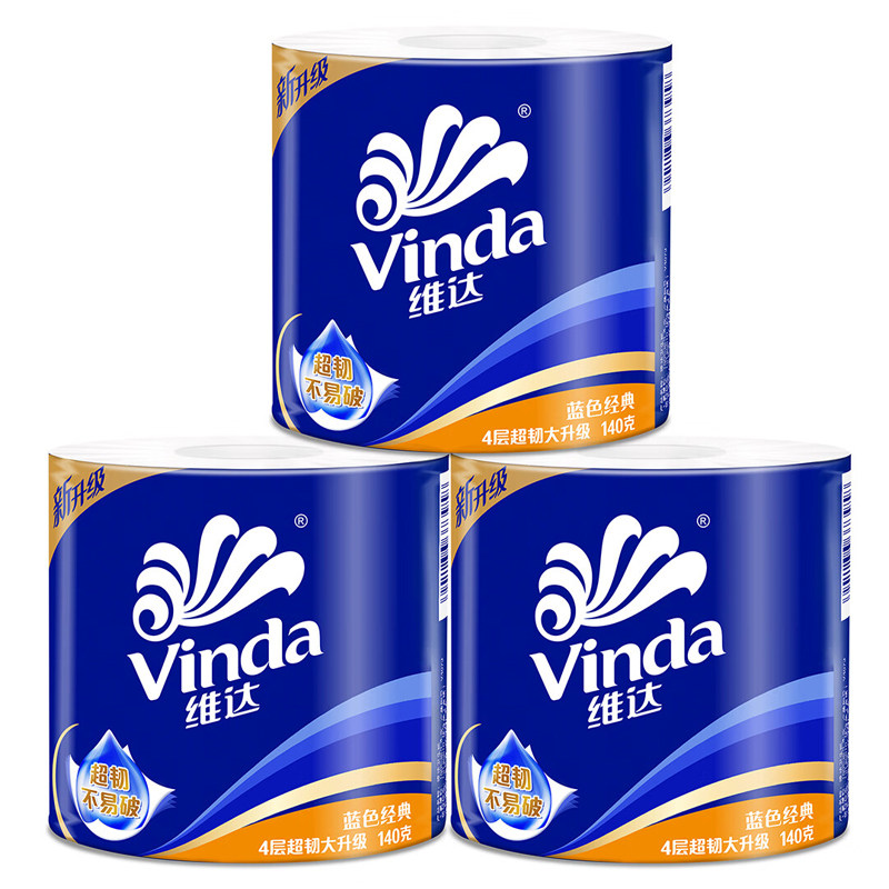 维达超韧卷纸蓝色经典4层140g20卷有芯卷筒纸厕纸巾擦手纸卫生纸