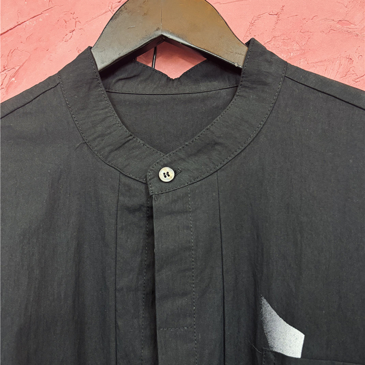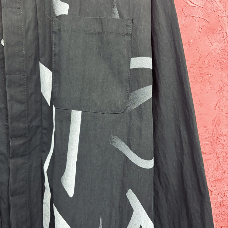 潮牌时尚立领宽松休闲衬衫上衣个暗黑性印花立裁潮流长袖衬衣男装