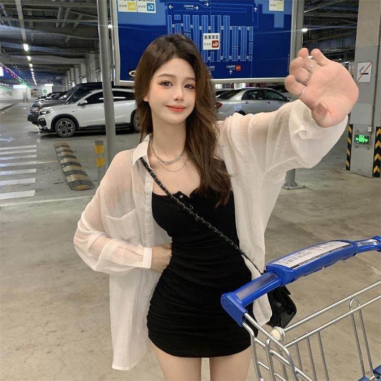 春夏法式套装女纯欲包身吊带连衣裙甜辣风长袖衬衫防晒外套两件套