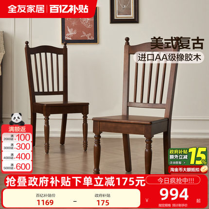 全友家居美式复古风餐桌餐椅新款客厅家用靠背椅子书房书椅办公椅