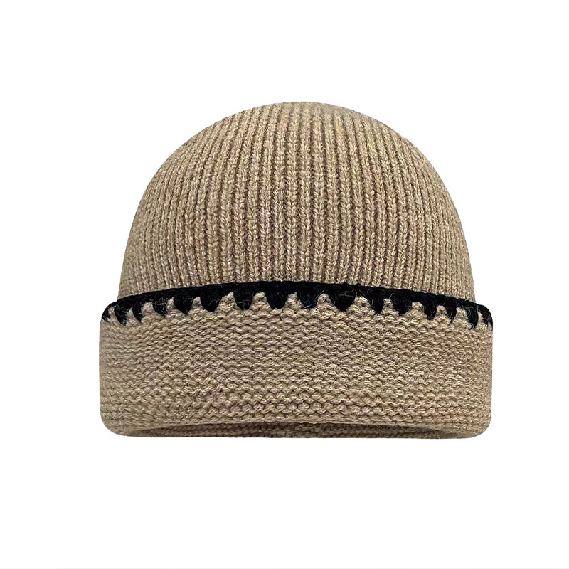 2025新款韩系高级感撞色针织帽女秋冬季时尚百搭显脸小保暖包头帽