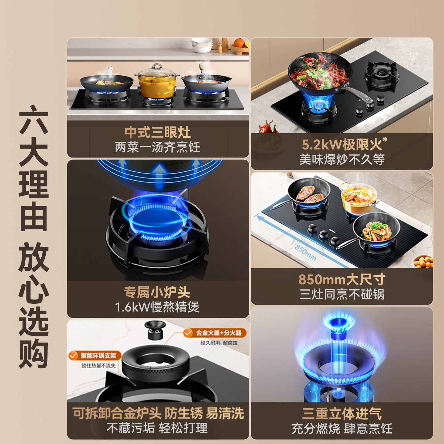 苏泊尔MB81S三眼燃气灶家用灶台嵌入式天然气多灶头煤气灶炉灶具