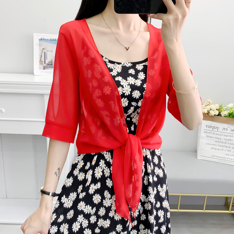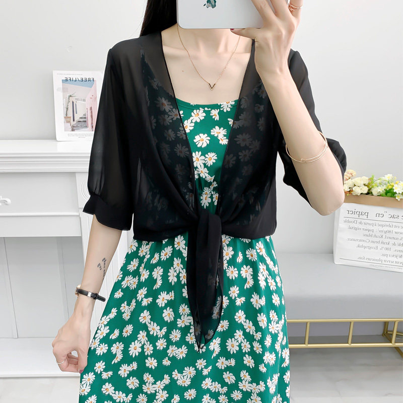 外搭夏配吊带裙的罩衫短款防晒披肩女夏季开衫大码薄款上衣小外套