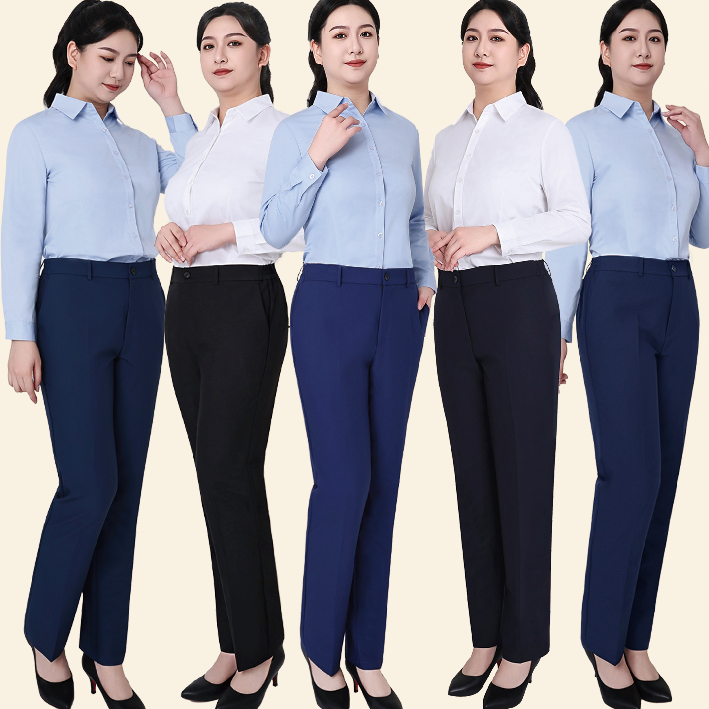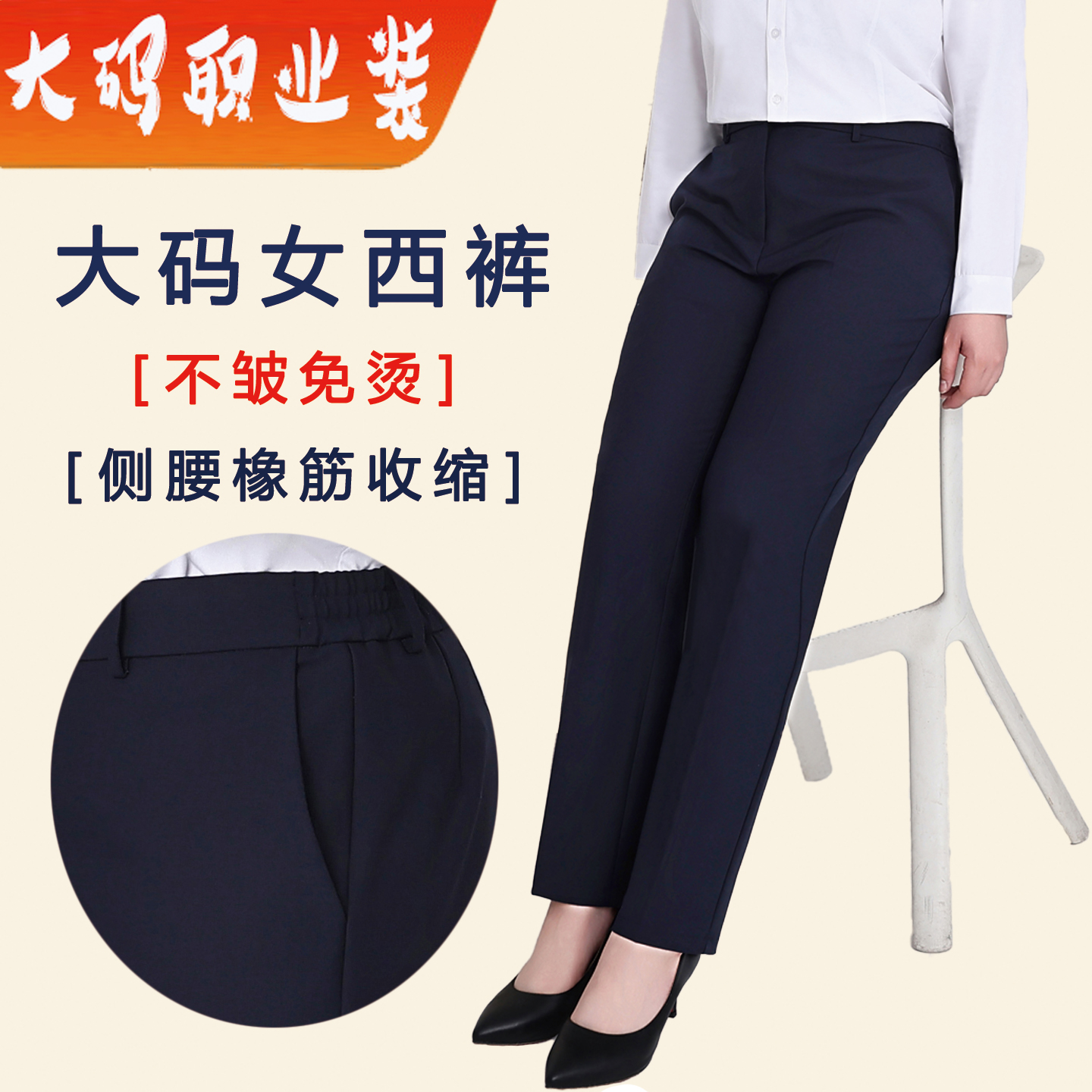 职业西裤女大码胖MM黑色西装裤藏青工装银行制服工作裤蓝色直筒裤