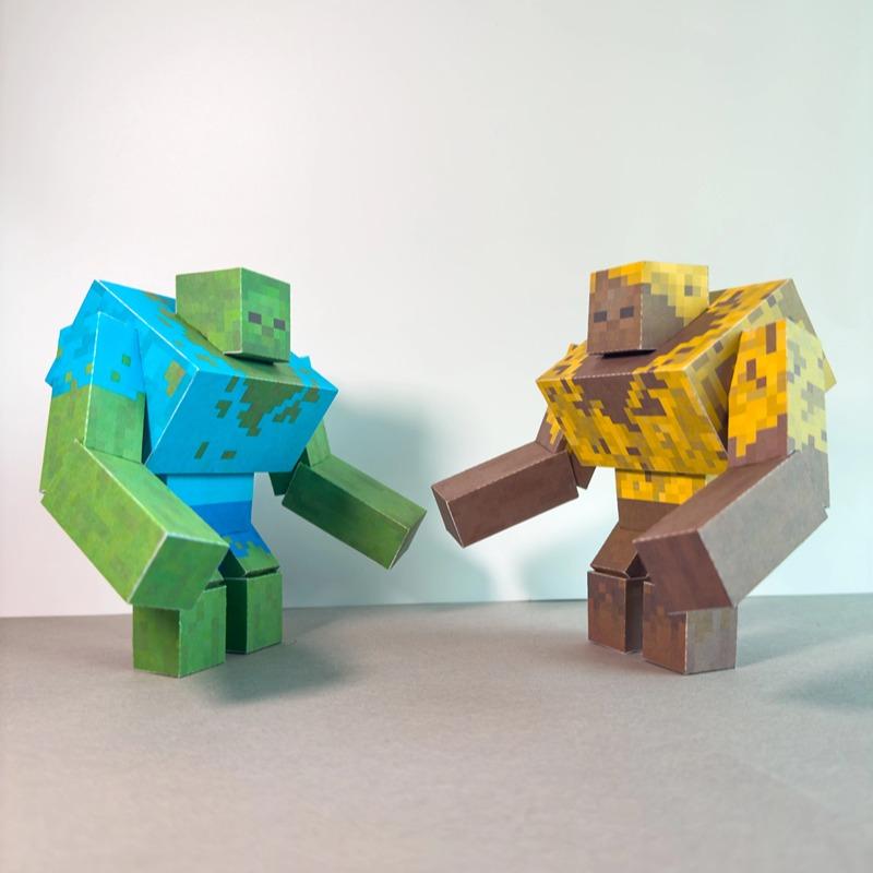 我的世界突变僵尸尸壳史蒂夫霜冻巨兽手工纸模型剪纸玩具立体制作