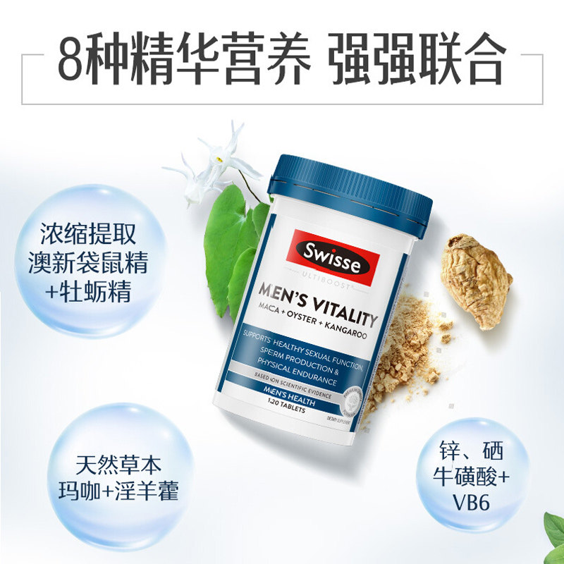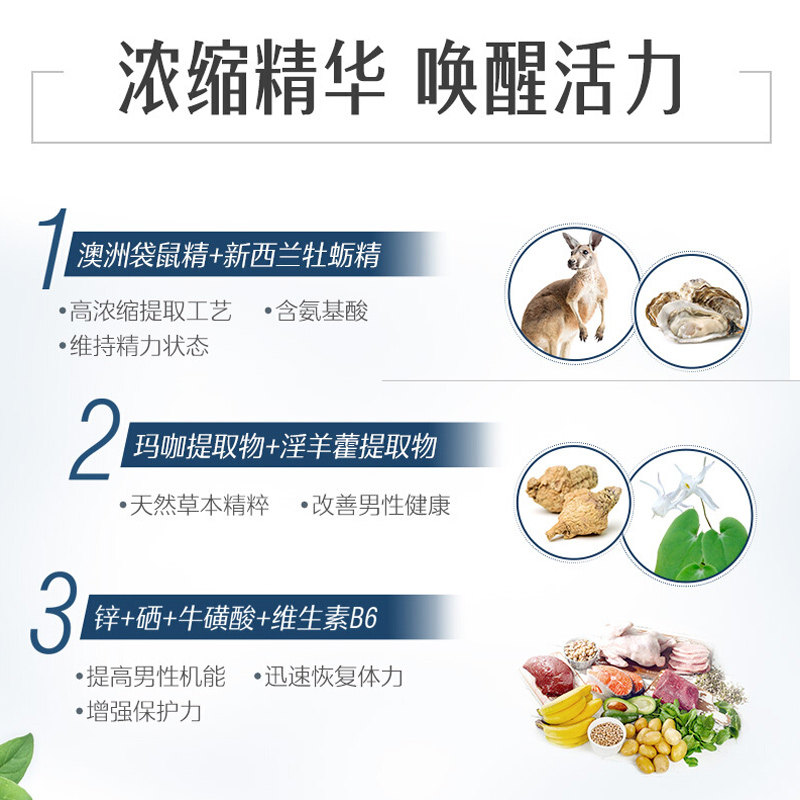 澳洲swisse男士雄风片活力片玛卡片牡蛎精华袋鼠生蚝精华男士精力