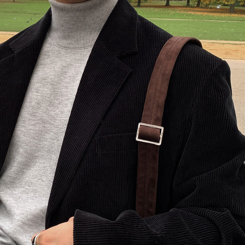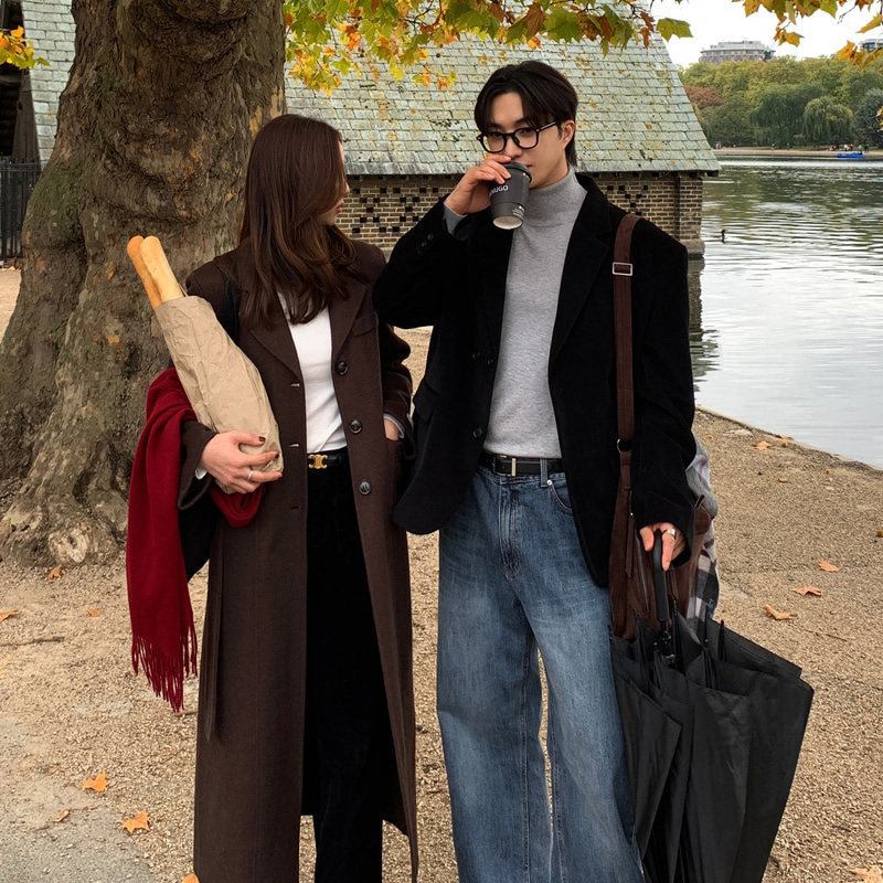 2025新款灯芯绒休闲西装外套男韩版宽松潮流痞帅黑色西服单件上衣