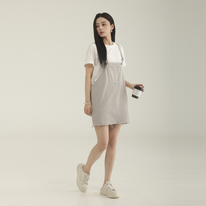 AIRIQI奥莱女装背带连衣裙时尚牛仔学院风韩系显瘦宽松AX32LQ509