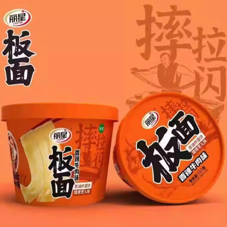 丽星板面桶装4个味整箱酸辣山椒肥牛味方便速食泡面红烧牛肉