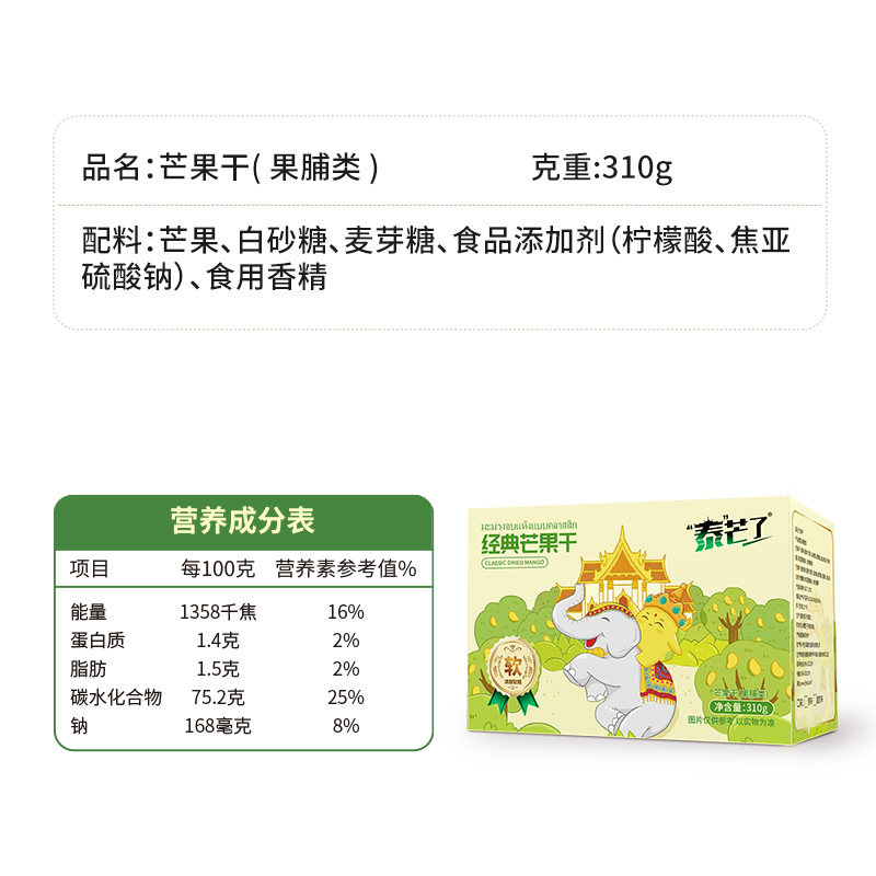 泰芒了盒装经典厚切芒果干310g