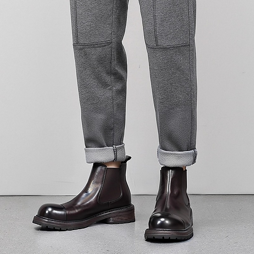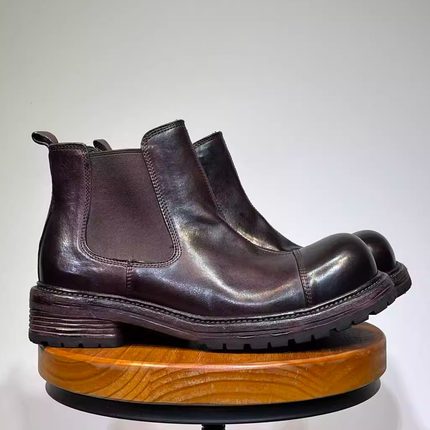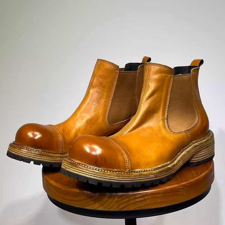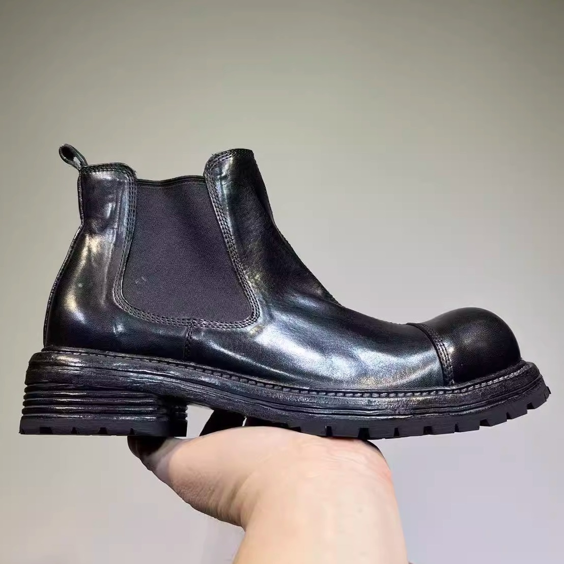 马皮切尔西短靴男鞋一脚蹬英伦烟筒真皮靴厚底大头高帮皮鞋马丁靴