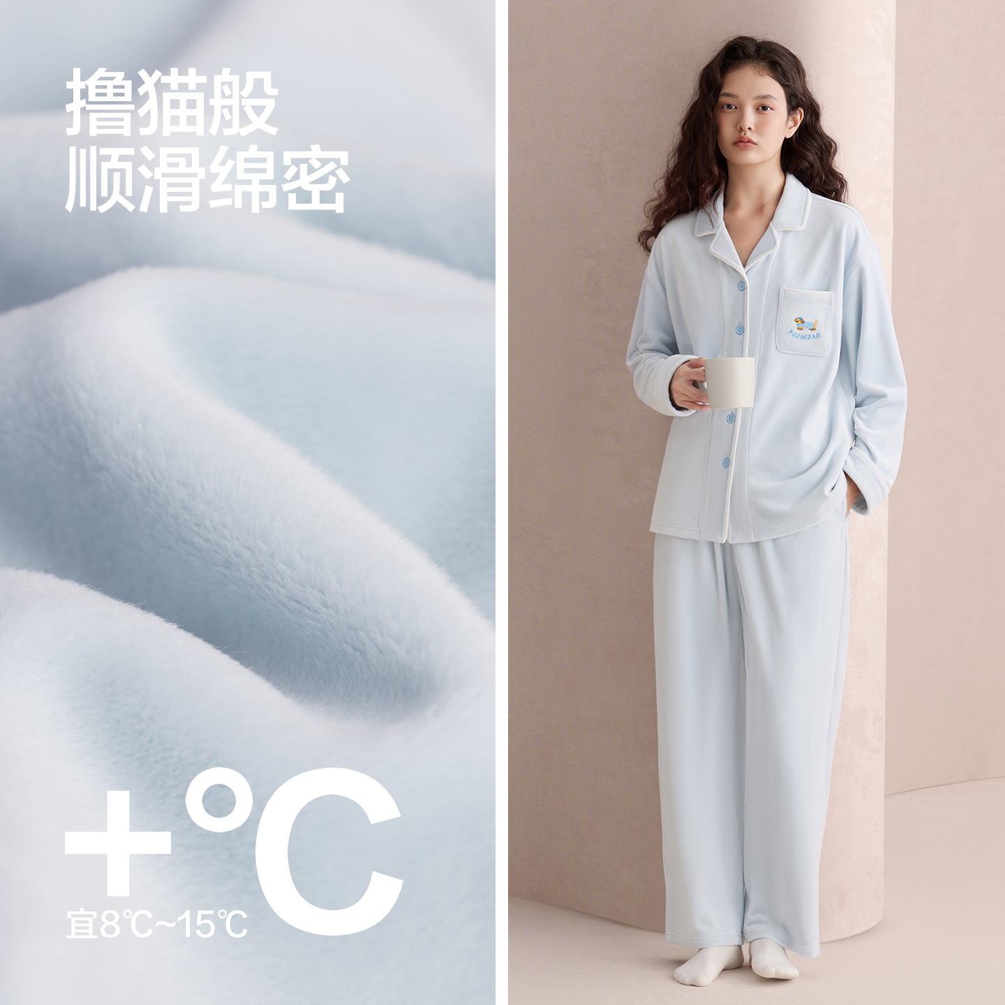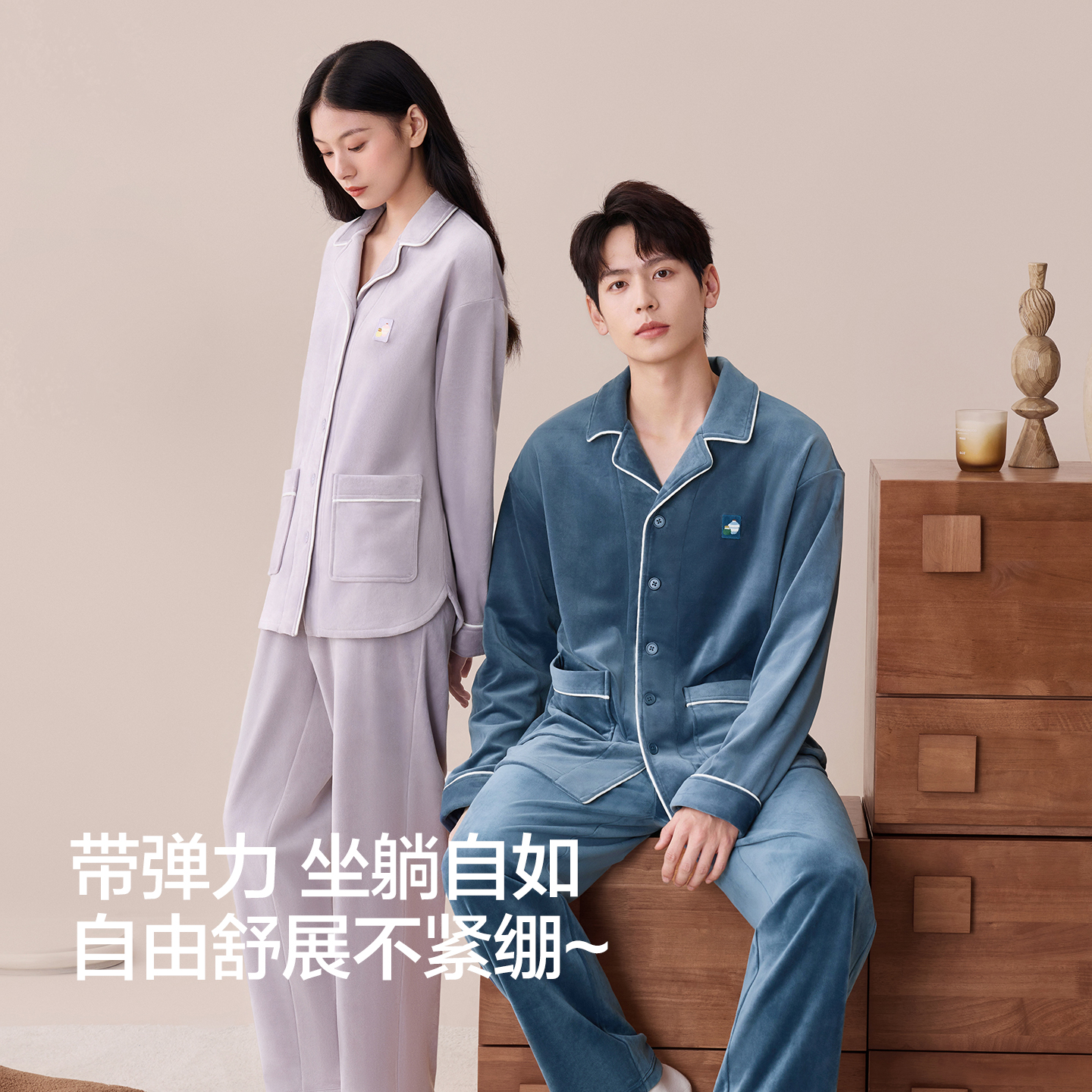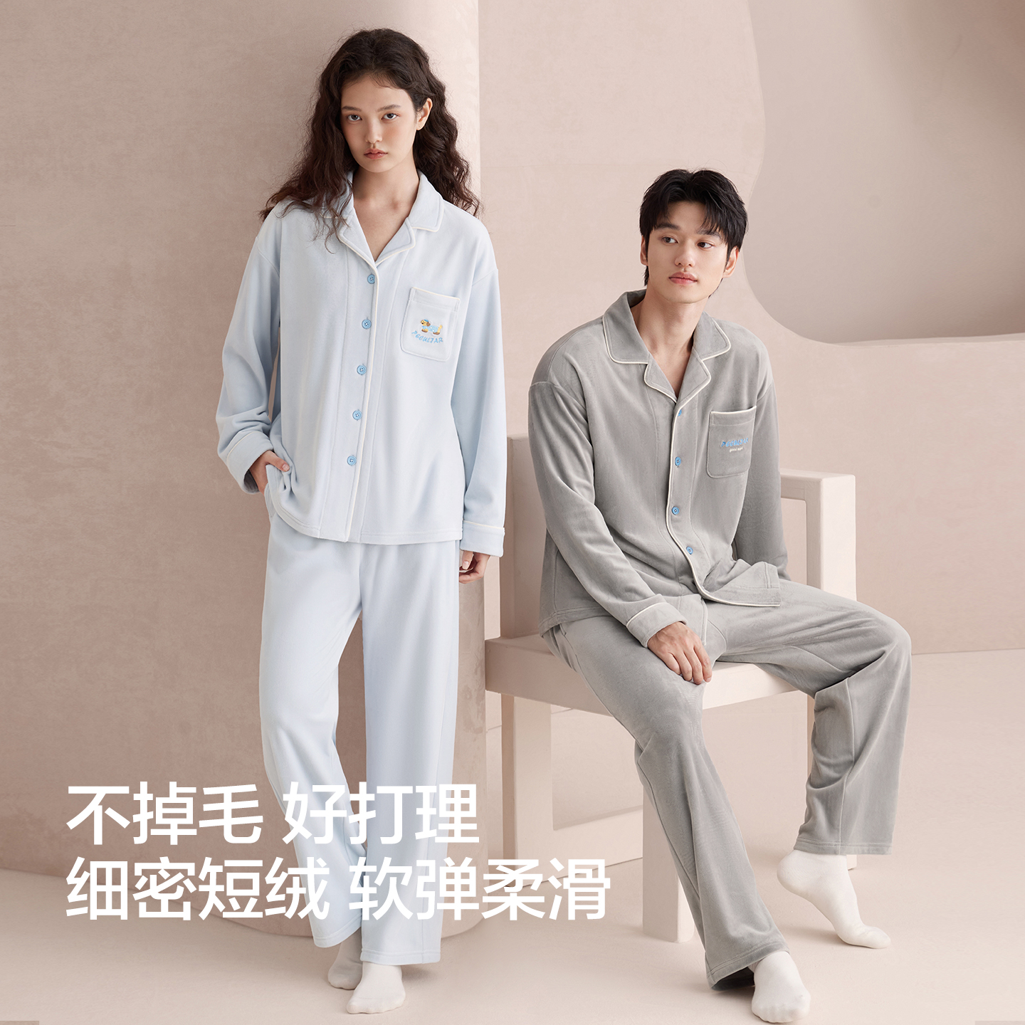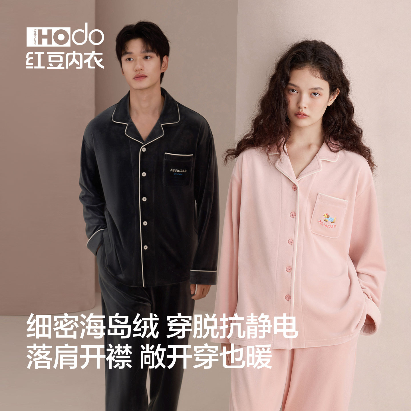 红豆情侣睡衣海岛绒抗静电男士珊瑚绒中厚女秋冬季保暖家居服套装