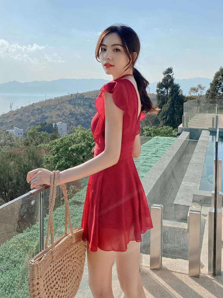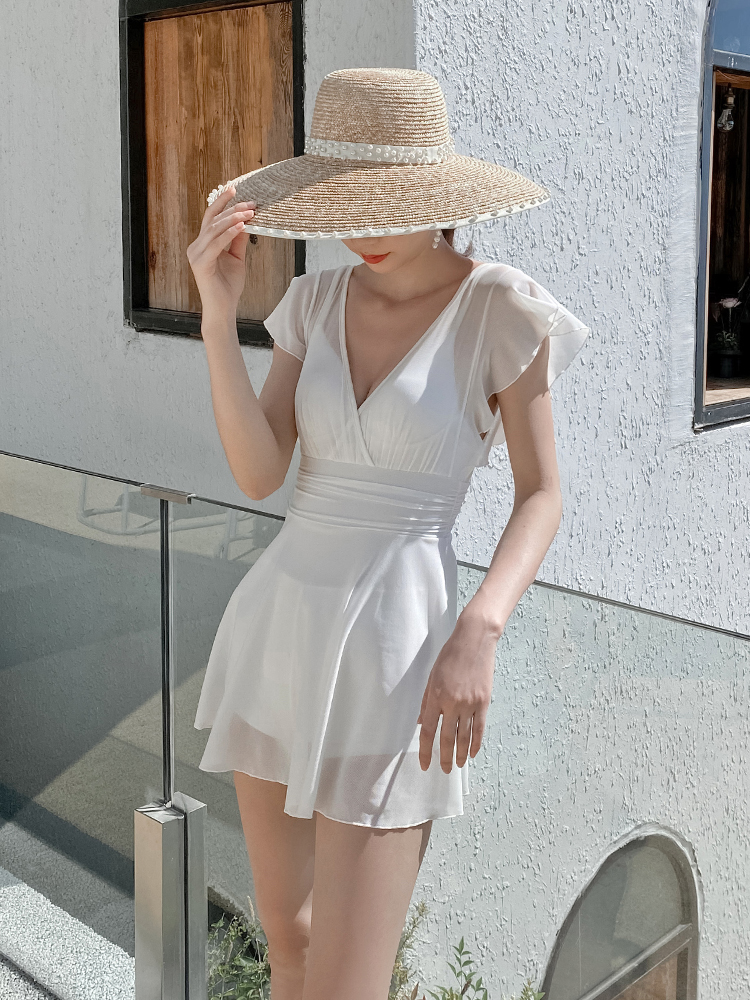 游泳衣女连体2021新款ins网红风显瘦遮肚子V领保守泡温泉泳装大码