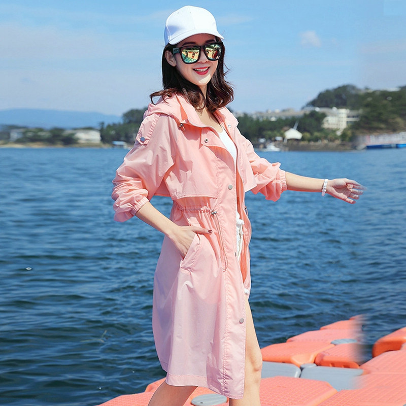 防晒衣女中长款2023新款夏季薄款女士防晒服女款白色长款风衣外套
