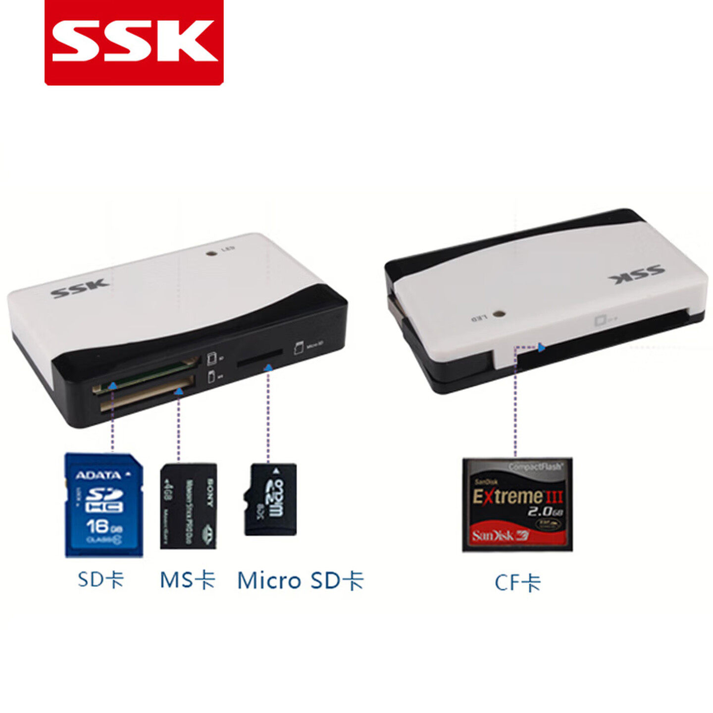 SSK飚王 奔腾2代SCRM057 多功能高速多合一读卡器 TF SD CF MS