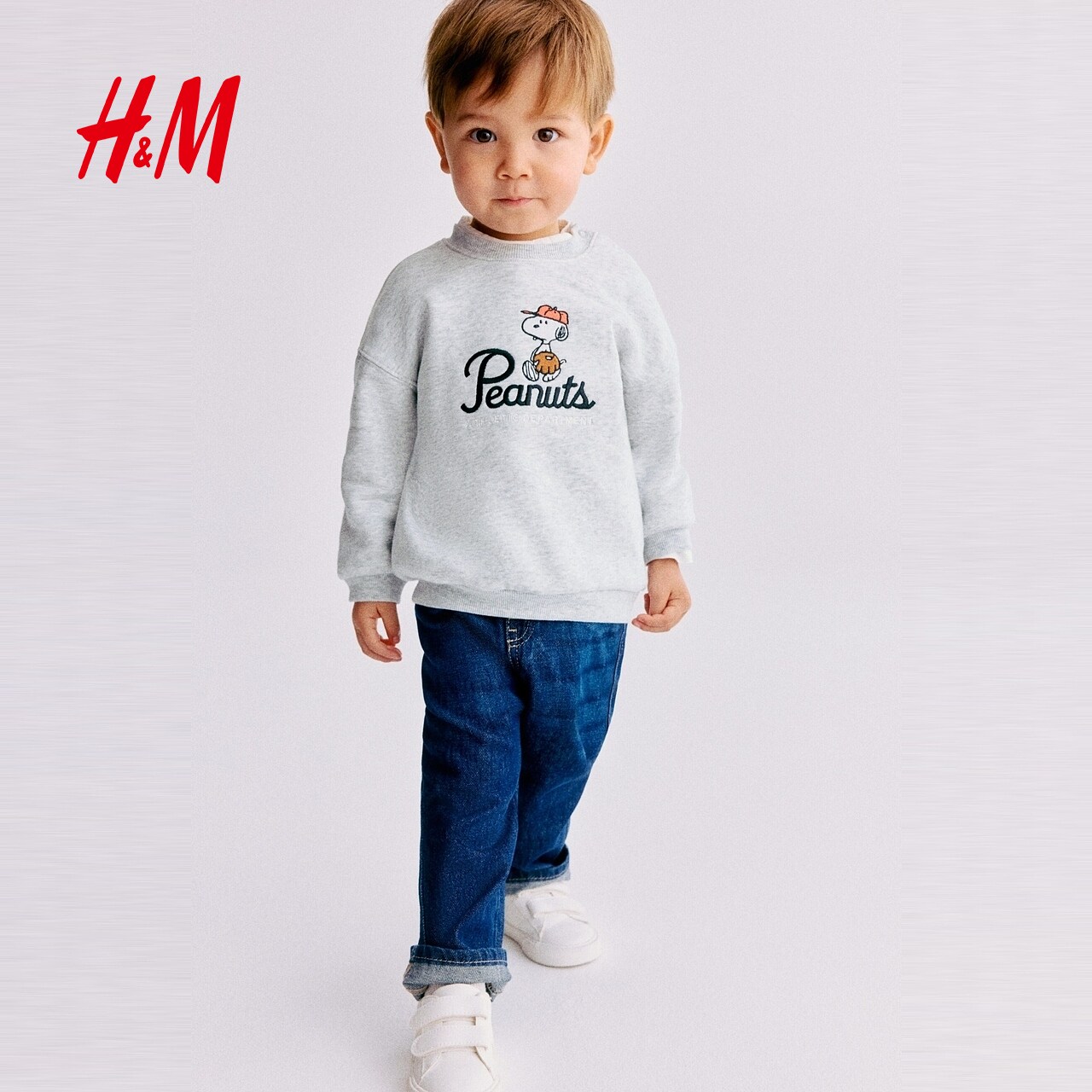 【史努比】HM童装男婴卫衣冬季印花内搭圆领套衫1314914