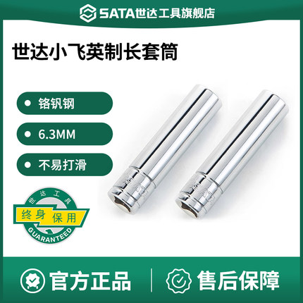 世达英制小飞套筒加长内六角6.3mm棘轮汽修套装1/4深孔外套管头