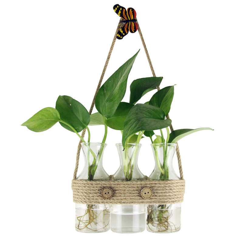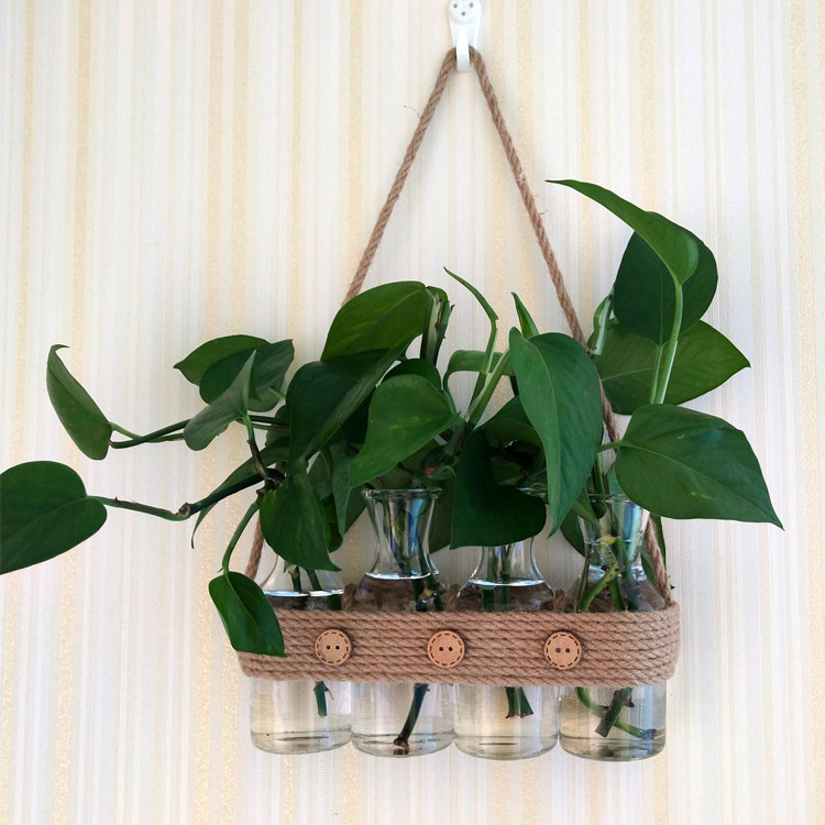 小清新创意麻绳水培绿萝玻璃花瓶花器家居客厅民宿墙面装饰挂件