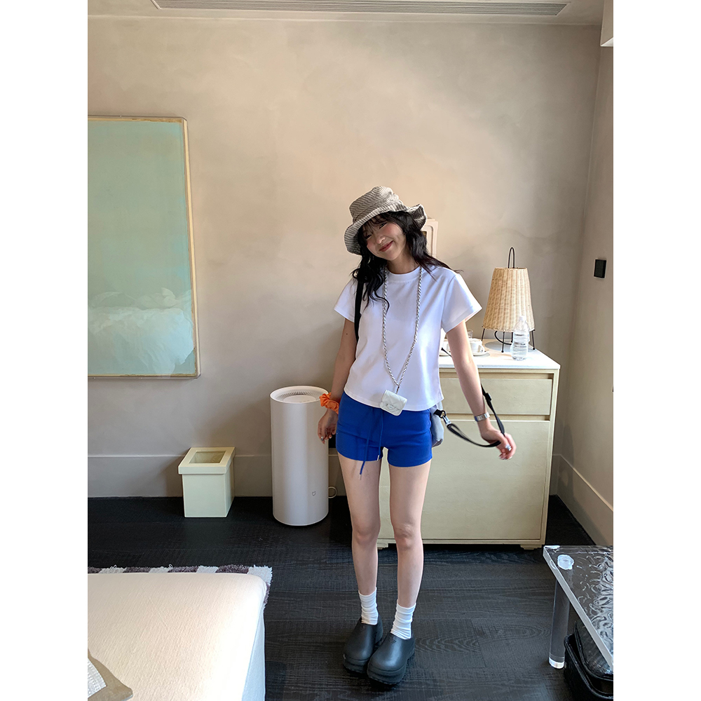 荒荒家 同色系抽绳短裤2025夏季新款直筒运动休闲抽绳五分热裤女