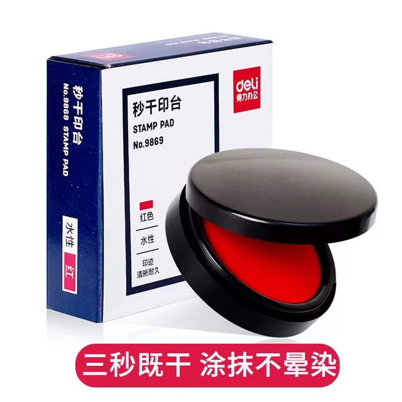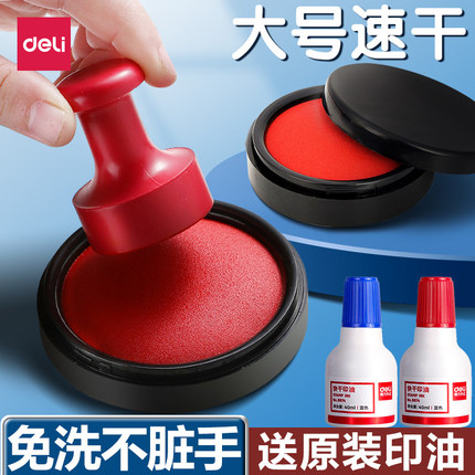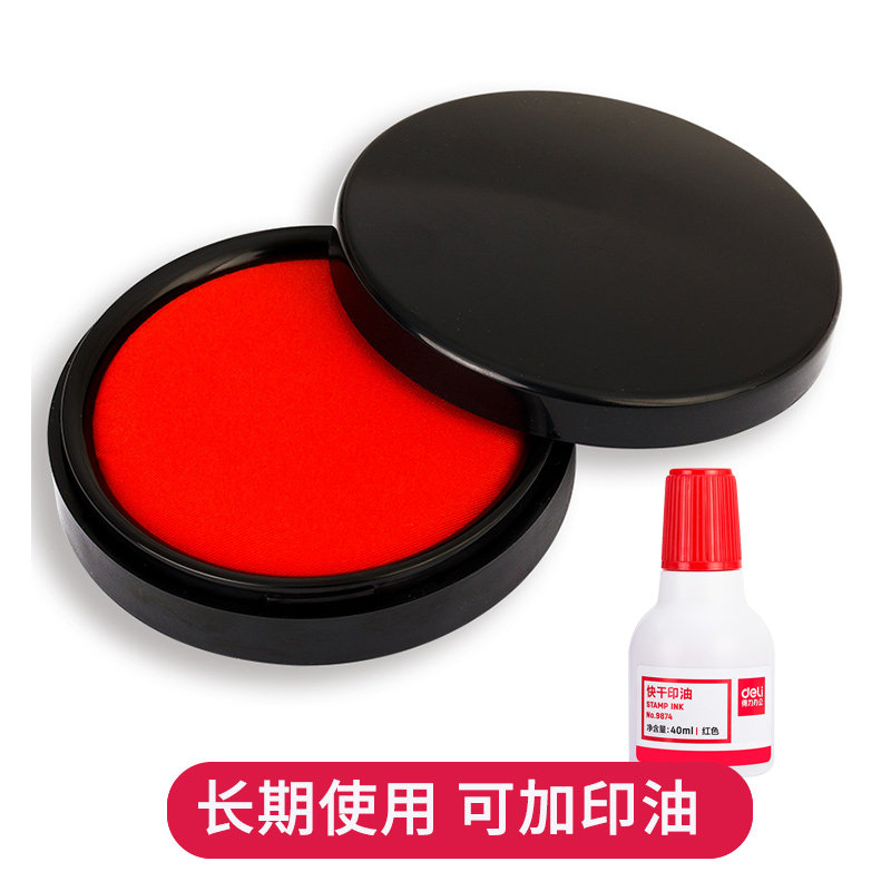得力红色印台【油性】蓝色黑色速干秒干快干替换印油圆形迷你便携式盖章手印银行财务会计办公用品印章印泥盒