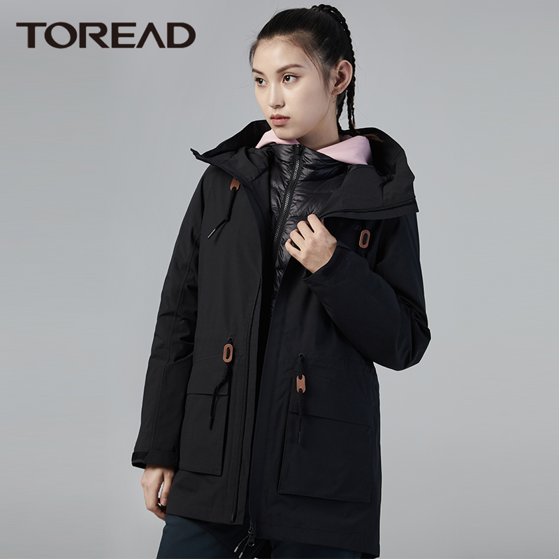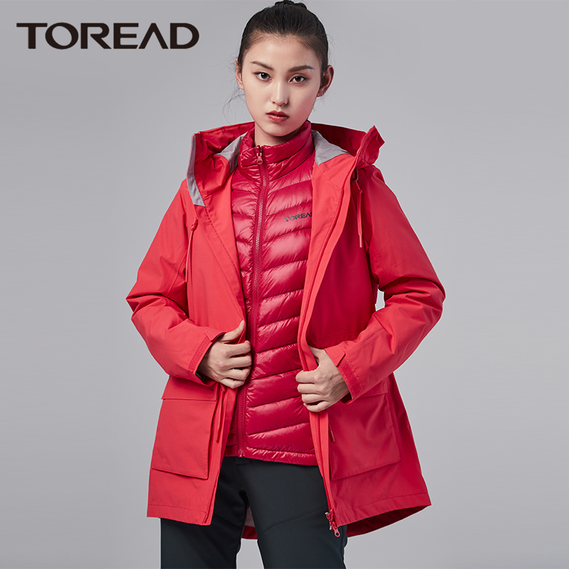 探路者冲锋衣女外套羽绒服三合一可拆卸秋冬户外防风保暖登山服男