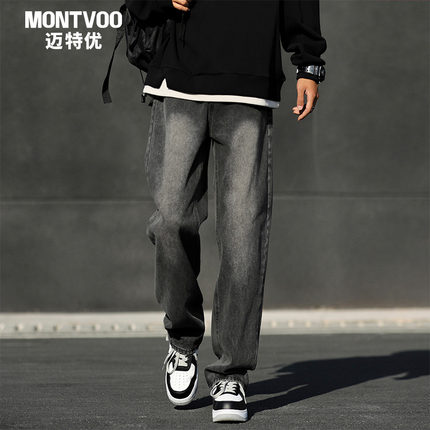 迈特优牛仔裤男春夏季2026新款美式水洗弯刀宽松直筒青少年长裤子
