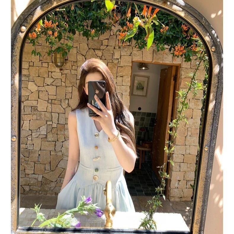 法式新款气质小香风夏季收腰显瘦长裙子显瘦百搭马甲背心连衣裙女