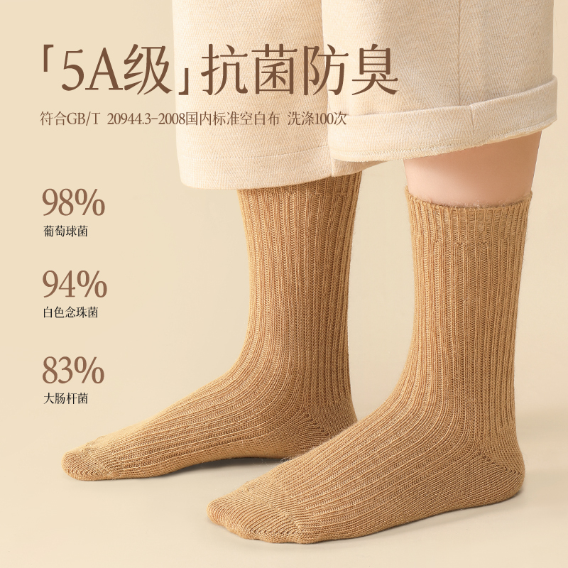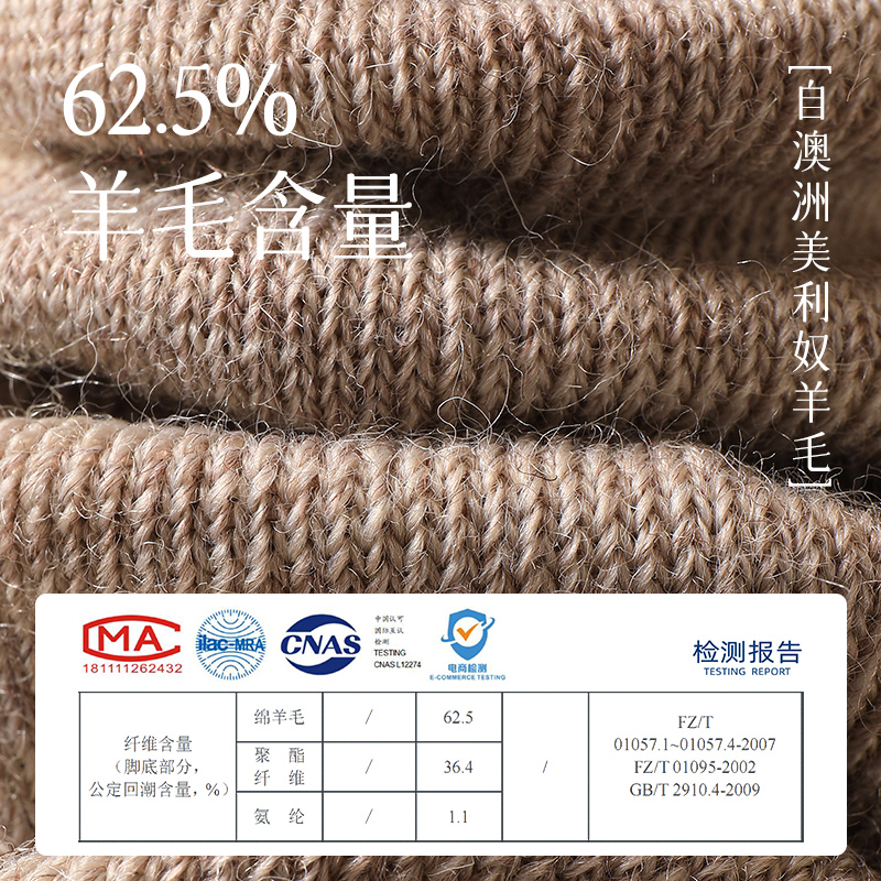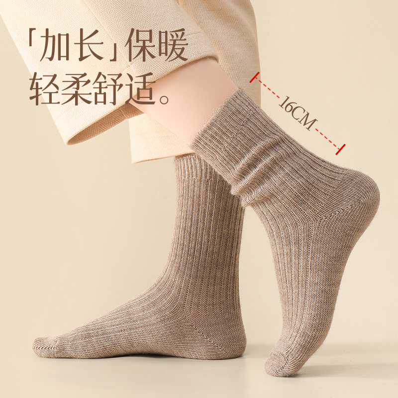 猫人美利奴羊毛袜子女款秋冬季加厚发热保暖毛圈袜抗菌防臭中筒袜