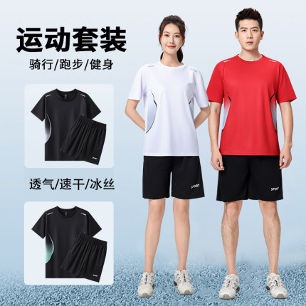 运动套装男速干衣冰丝T恤训练团队服定制跑步短袖健身羽毛球衣服