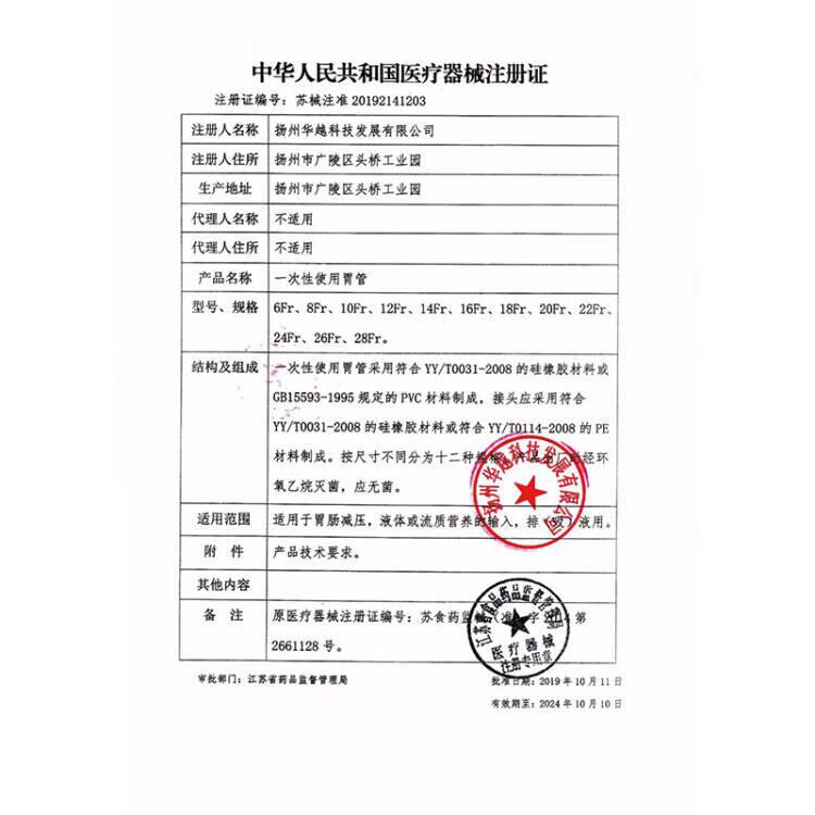 华越纯硅胶胃管流食鼻饲管鼻胃肠管长期经鼻喂养管一次性胃管包