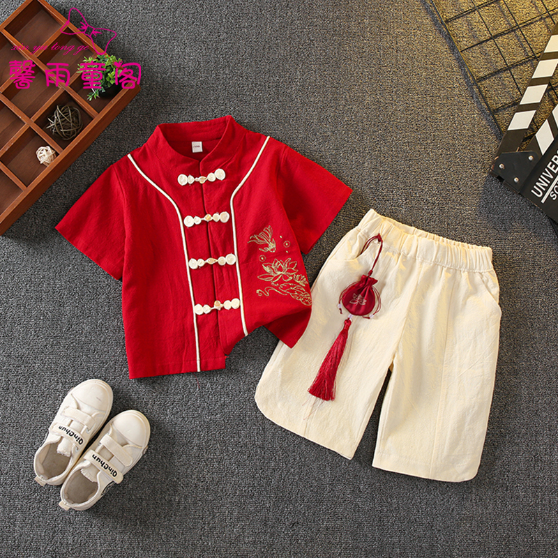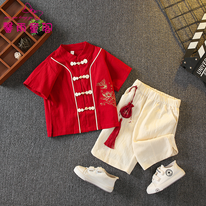汉服男童国风套装夏季儿童新中式男孩古风唐装女孩古装端午表演服