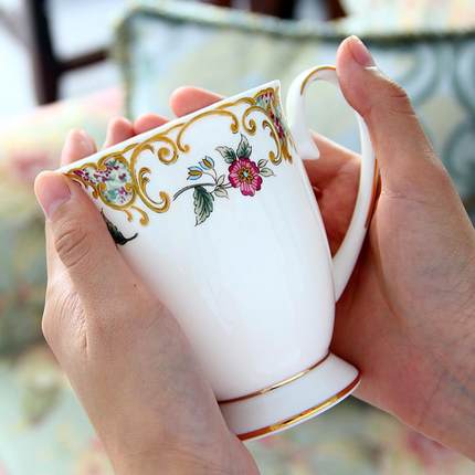 骨瓷马克杯带盖勺创意杯子情侣水杯家用咖啡杯陶瓷花朵早餐杯茶杯