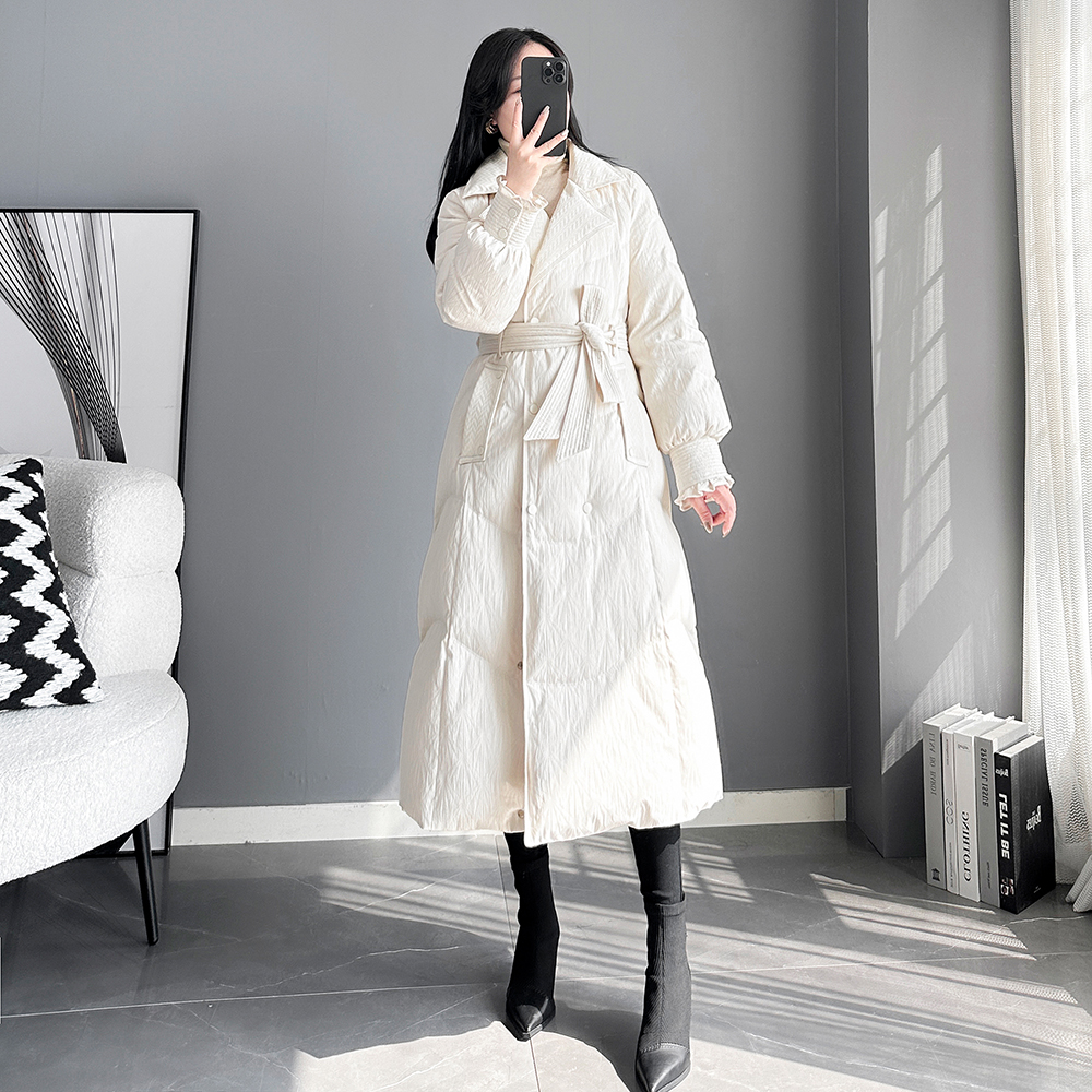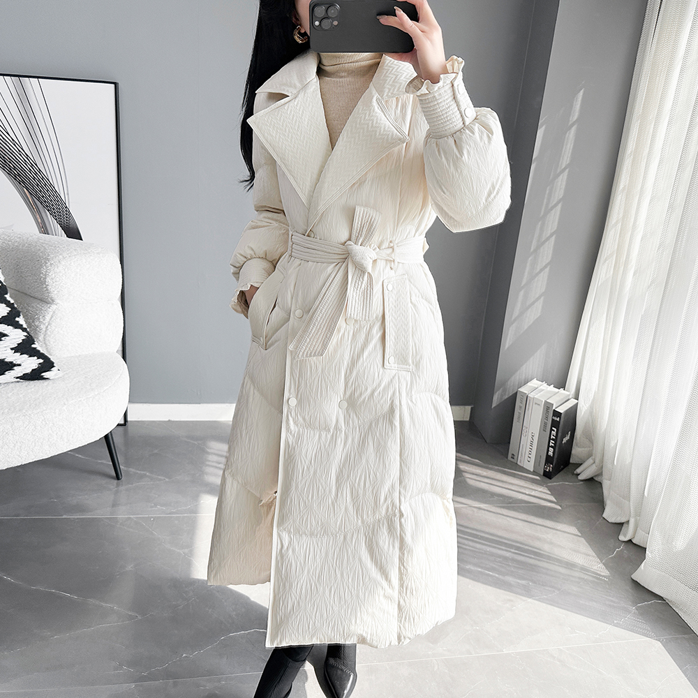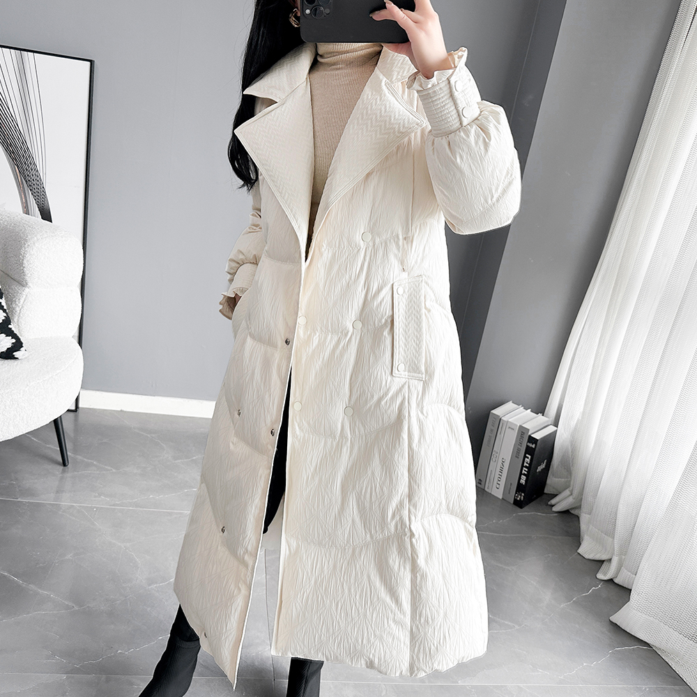 羽绒服女2025新款冬季中长款过膝设计感气质西装领白鸭绒大衣外套