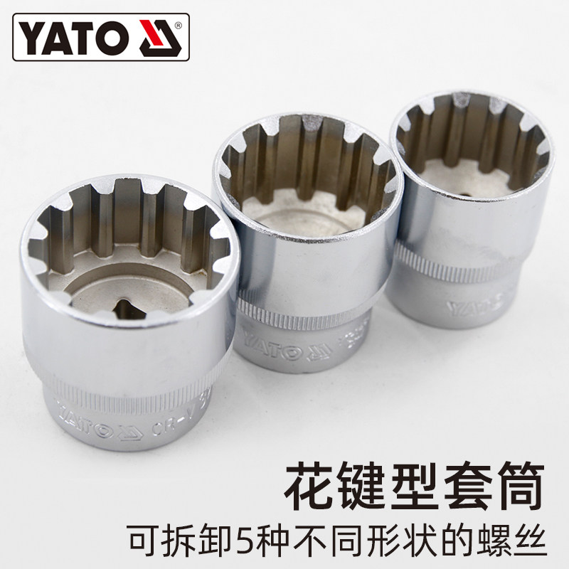 YATO易尔拓花键型套筒头大飞1/2"短套头12角E型星形套管汽修工具